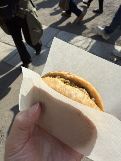 蒸したてのおやきは、外はもっちり、中はやさしい味わい。